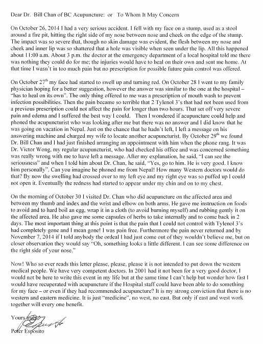 DEAR DR. BILL CHAN OF BC ACUPUNCTURE